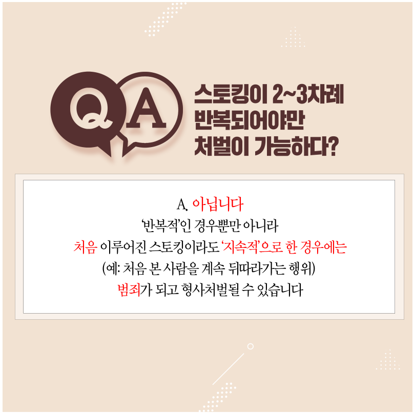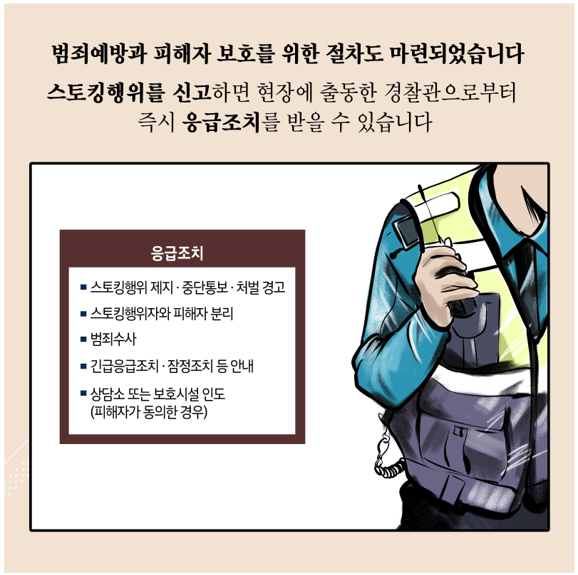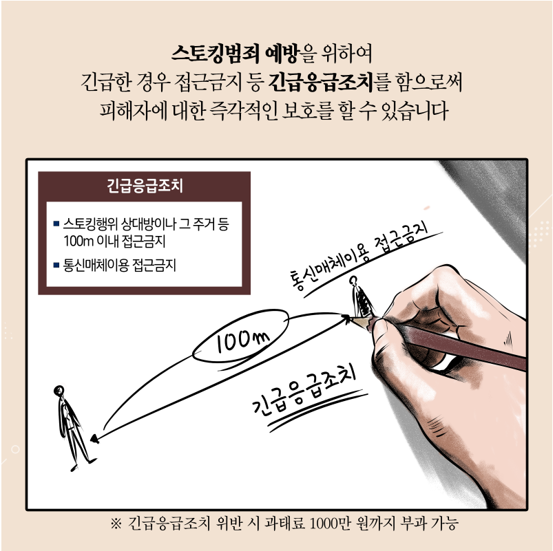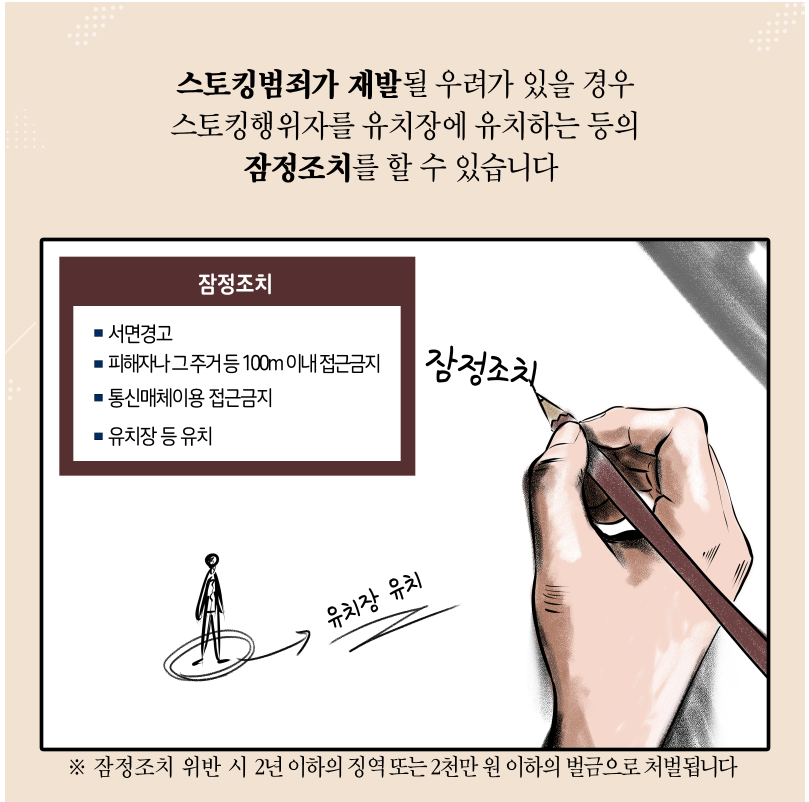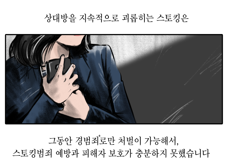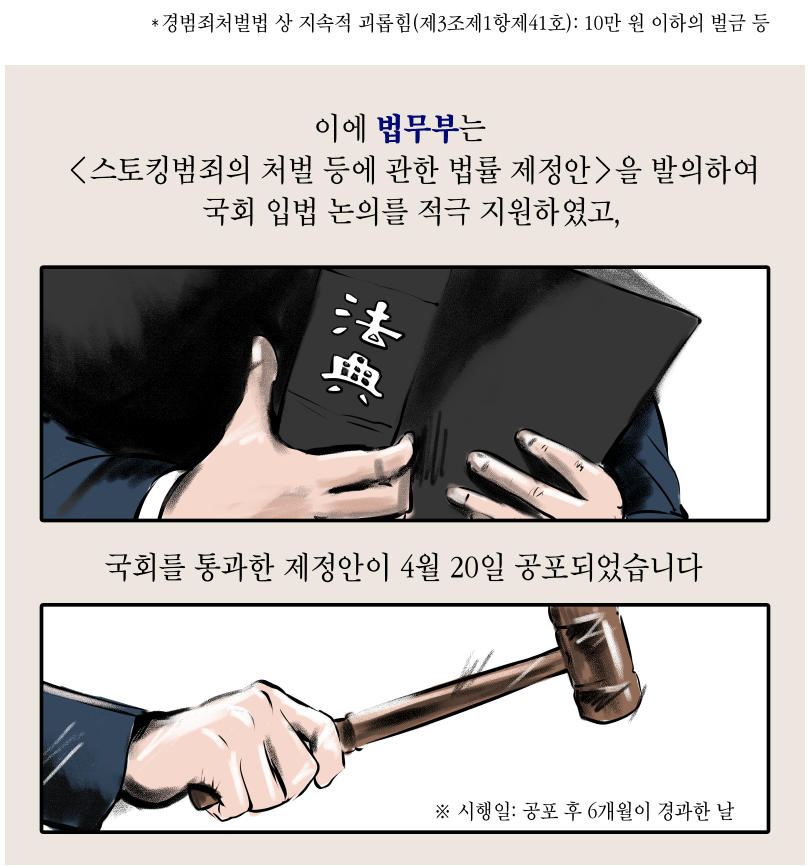 출처표시: "본 저작물은 법무부에서 '2021년 4월 20일' 작성하여 공공누리 제4유형으로 개방한 '스토킹 처벌 관련 웹툰(작성자:법무부)'을 이용하였으며, 해당 저작물은 '법무부, 웹툰/인포그래픽 게시판'에서 무료로 다운받으실 수 있습니다."