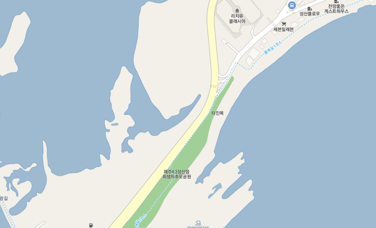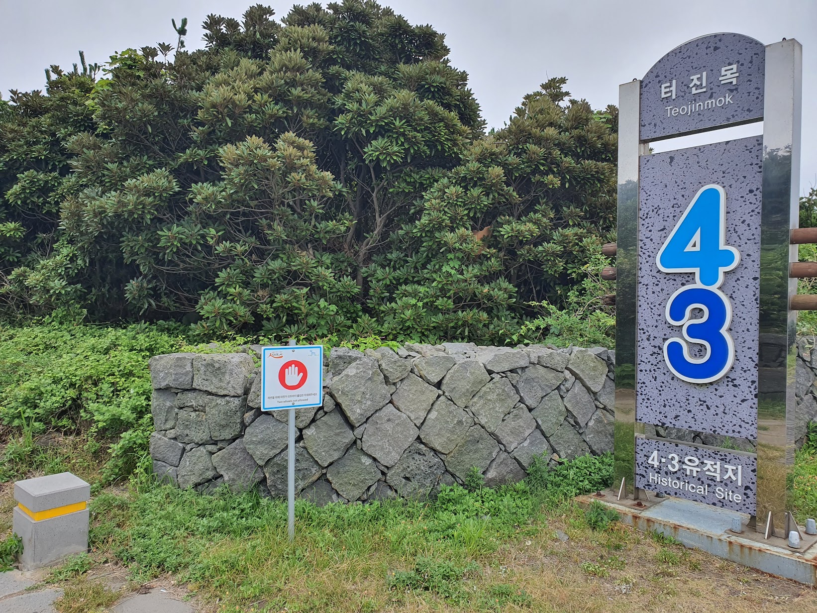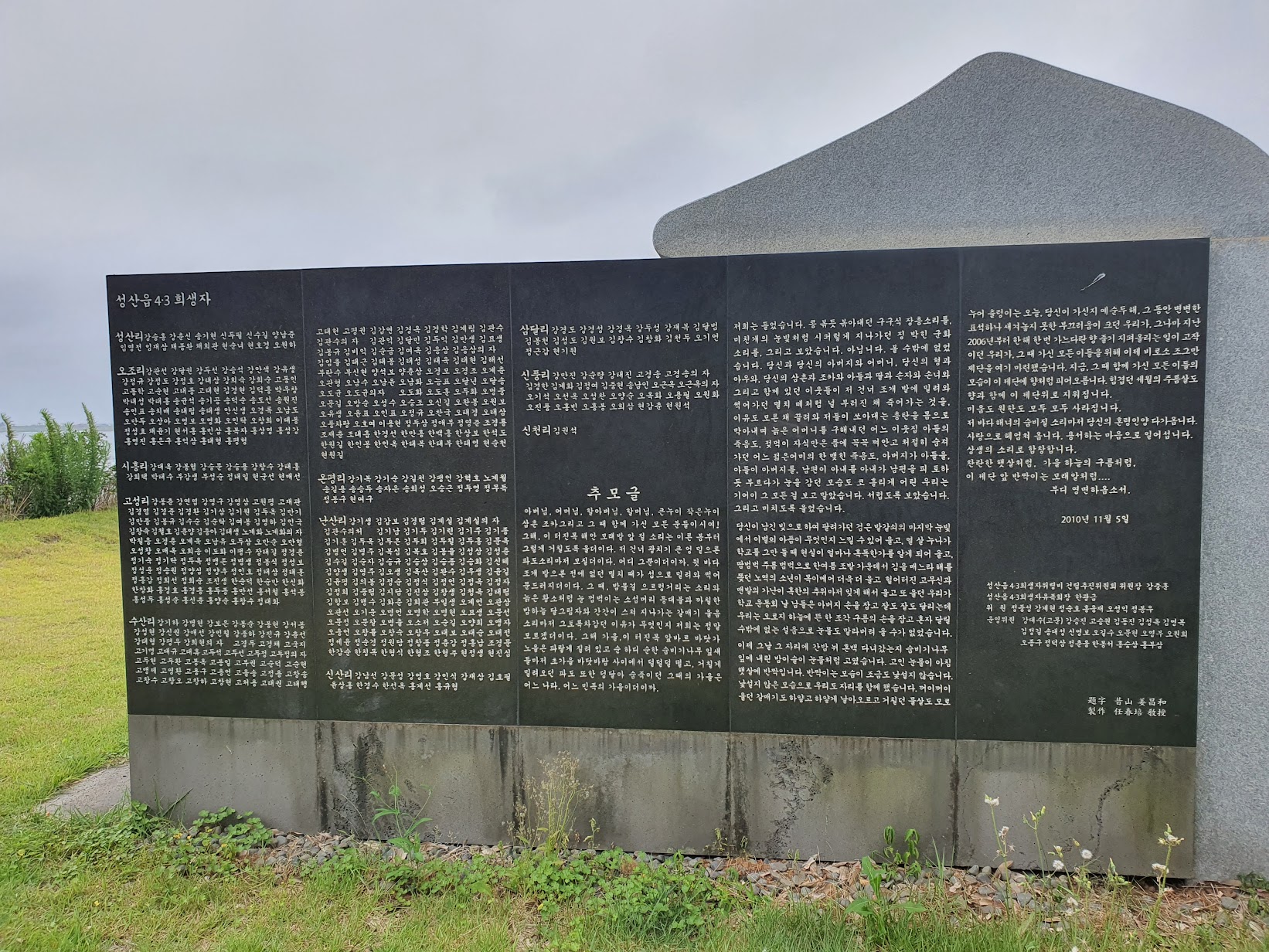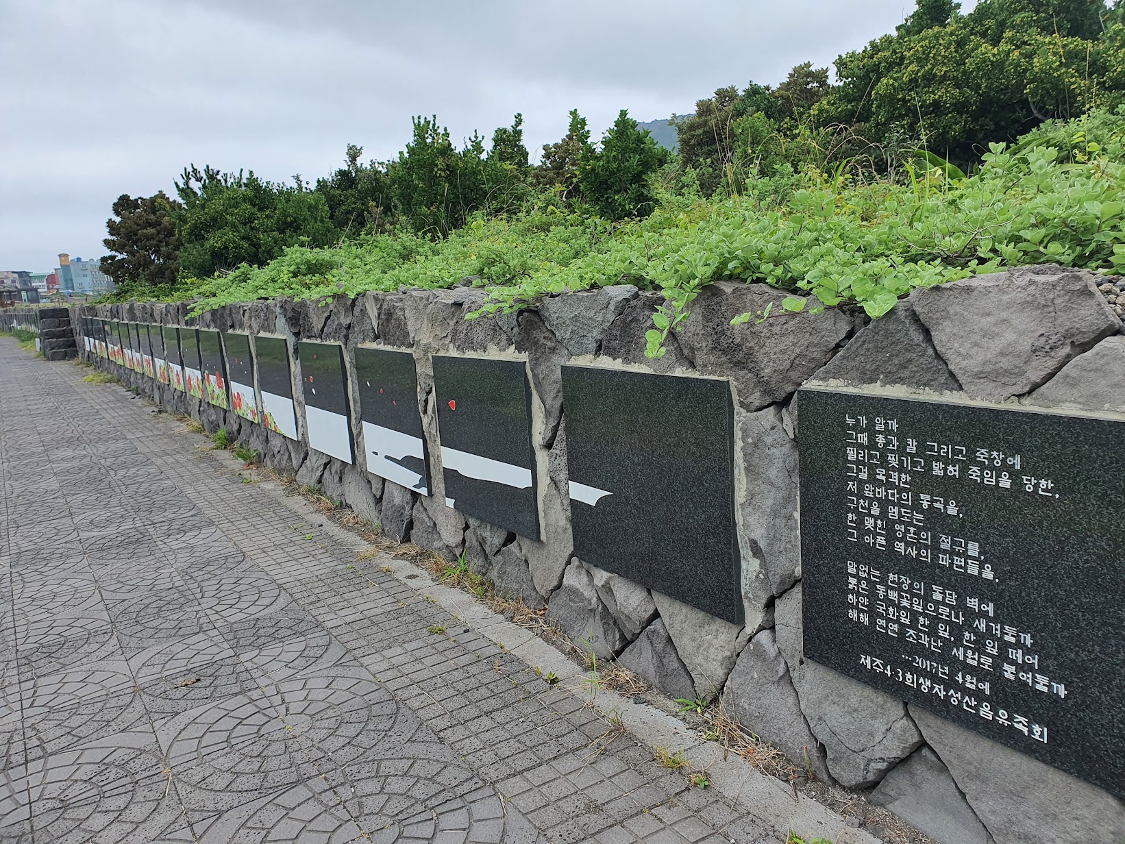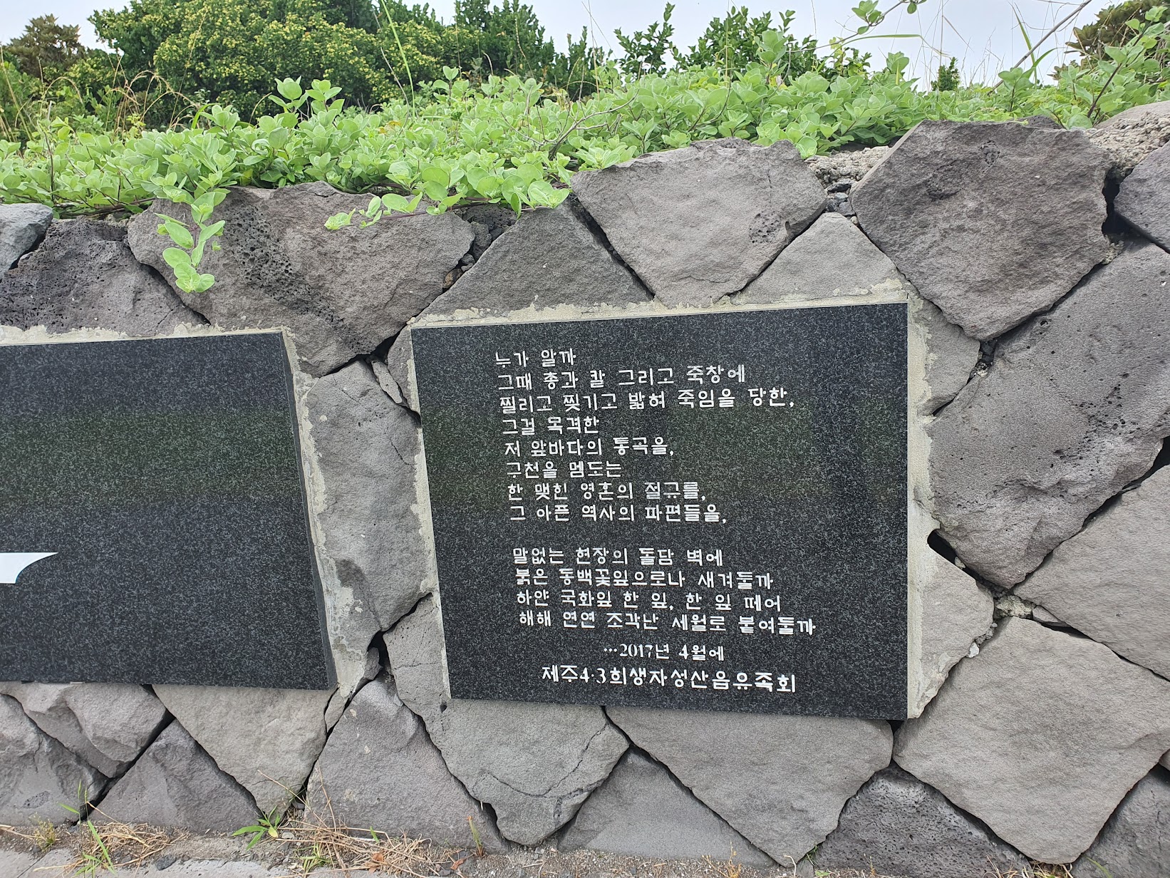 성산 터진목의 제주4.3 성산읍 희생자 추모공원을 지나고 있다. 해방의 기쁨도 잠시, 정부와 미군정 등의 강경진압으로 민간인 피해자는 제주 전역에 걸쳐 최대 3만여명으로 추정되고 있다.