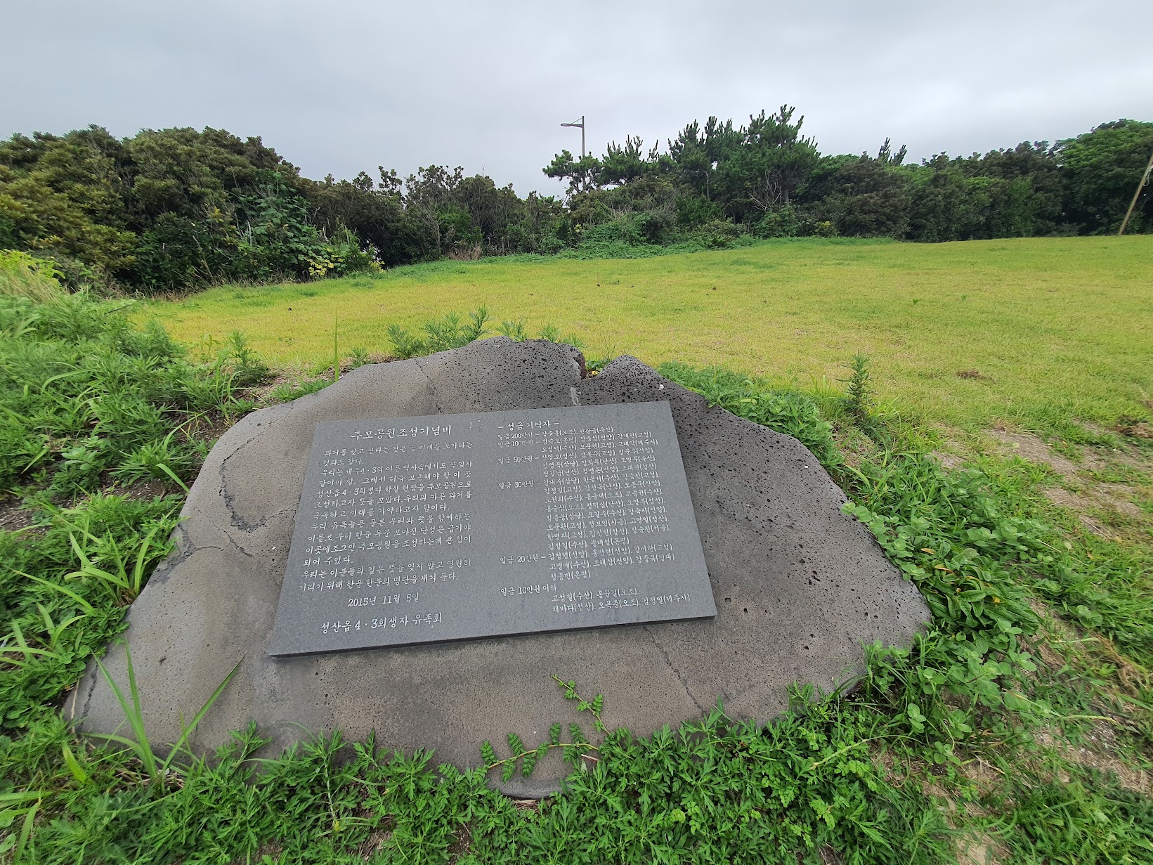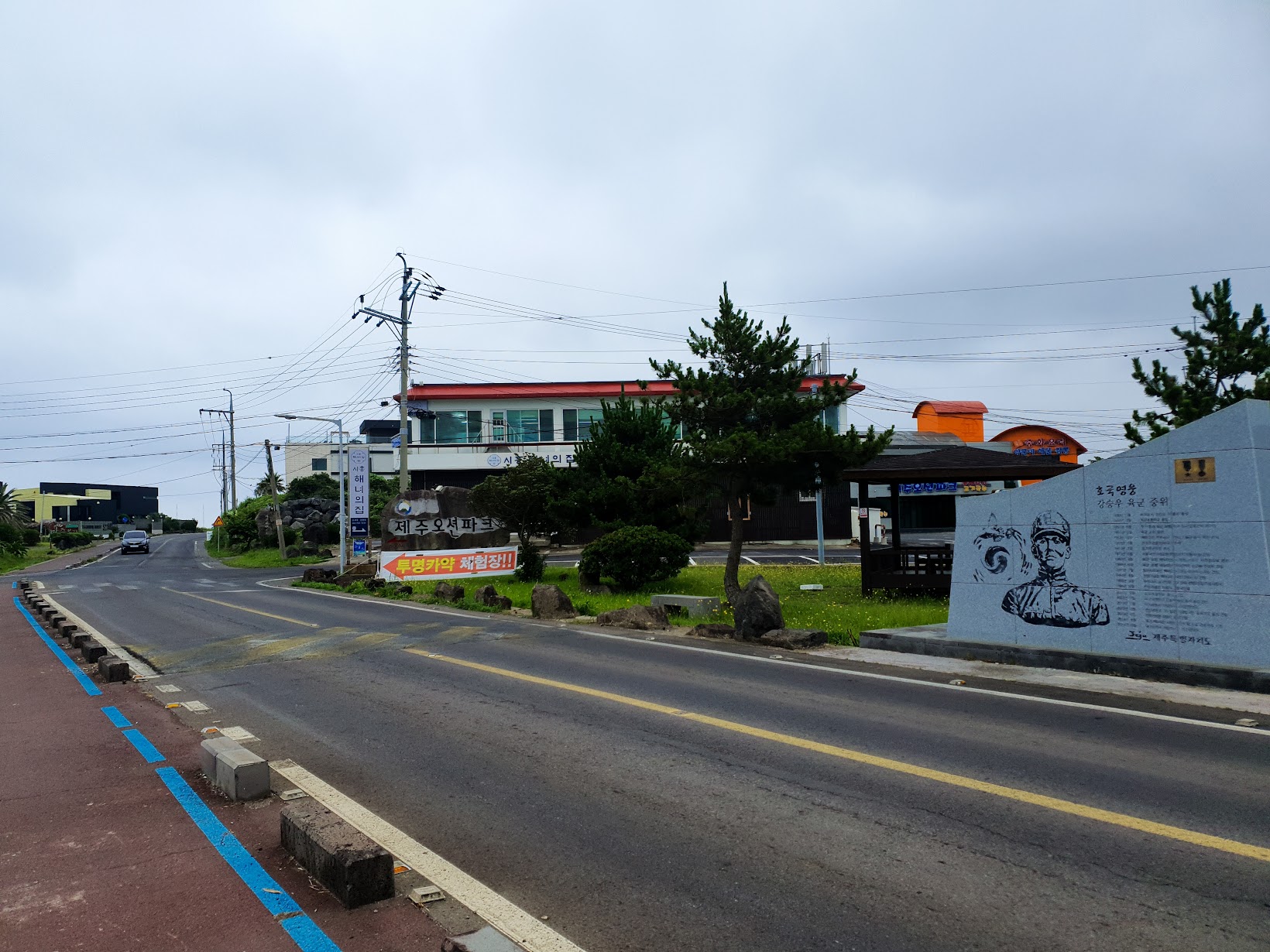올레 1코스는 시흥에서 종달리를 거쳐 광치기 해변에서 끝난다. 앞선 글에 이어 중간 스탬프 지점인 목화휴게소부터 포스팅을 시작한다. 목화휴게소에서 10여분을 걷다보면 호국영웅 강승우 육군중위(1930~1952)의 추모비를 만난다. 강승우는 시흥리 출신으로 한국 전쟁(6.25) 당시 자원입대하여 참전했고, 1951년 소위로 임관하여 치열한 백마전투에서 전사했다고 한다. 자세한 내용은 다음 글(2020.5.21) 참조