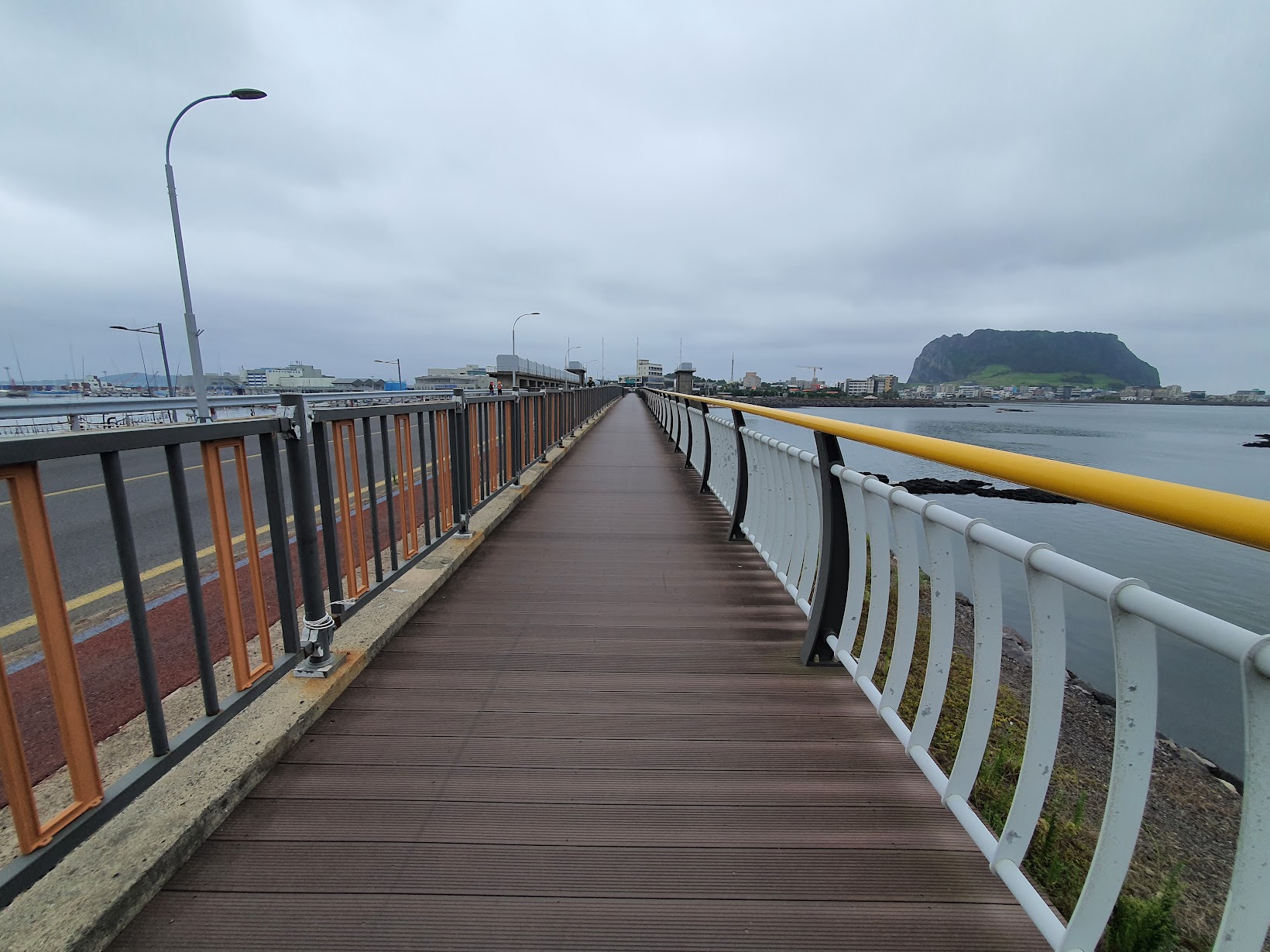 바닷가 해맞이 해안로를 따라 걷다보면 한도로와 만난다. 한도 로 위의 갑문교는 성산일출봉와 이어진다. 그런데 갑문을 닫은 것은 2014년에 열린 전국체전의 카누 경기 대회 당시 단 한 차례에 불과했다고 한다. 그리고 당시 갑문을 작동하기 위해 발전기 등을 가동하는 데 소요된 예산은 4억2000만원이고, 현재는 갑문을 연 채로 방치됐다는 기사를 읽었다. 자세한 내용은 아래 기사(2019.4.19) 참조